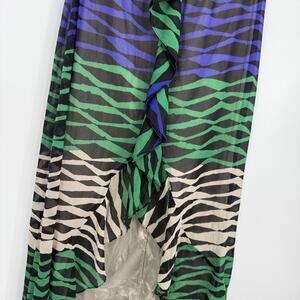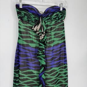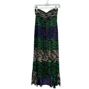 BCBGMAXAZRIA Silk Strapless Hi Low Maxi Dress Size 0 Colorful Stripes Ruffled