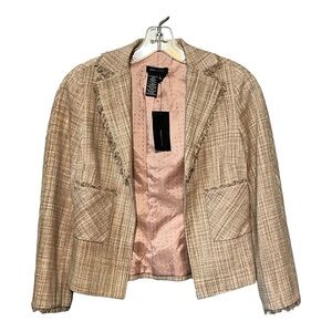 BCBGMAXAZRIA Silk Tweed Blazer Beige & Blush Cropped Fringe Trim Woven Jacket XS