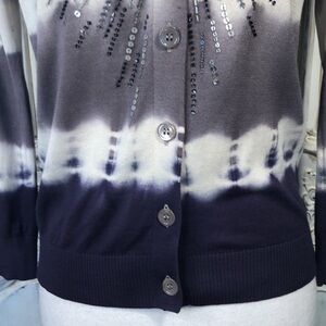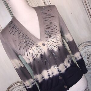 BCBGMAXAZRIA Silk and Cotton Blend Tie Dye Sequin and Beaded Sweater Size Small