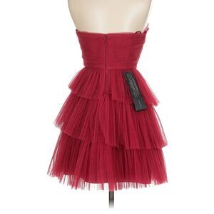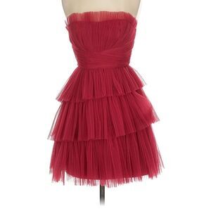 BCBGMAXAZRIA Size 8 Flattering Strapless Eve Tiered Tulle Mini Dress, Red