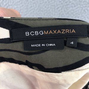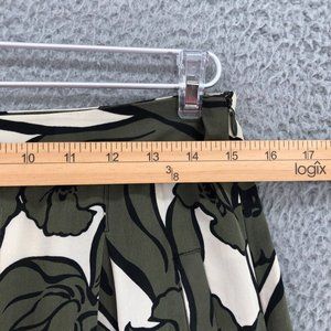 BCBGMAXAZRIA Skirt Womens 4 Green Floral Silk Kailin Pleated Knee A Line Pocket