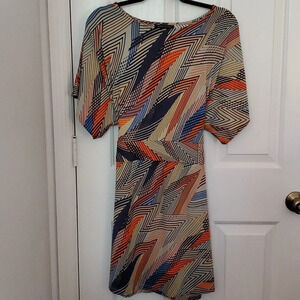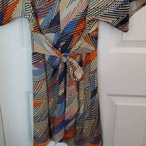 Comfortable dress with a built in belt and wide sleeves. Great travel dress wrinkle free!