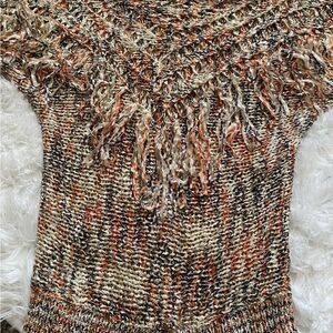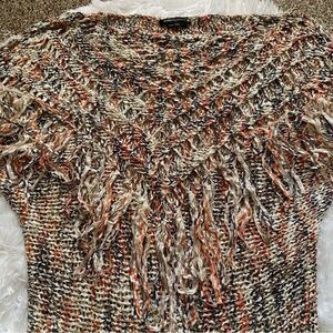 BCBGMAXAZRIA Slouchy Fringe Stretchy Sweater Knit Pullover Womens Size Large