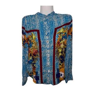 BCBGMAXAZRIA Snake printed floral Top Blouse Long sleeve Button up