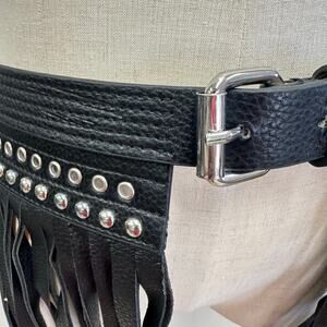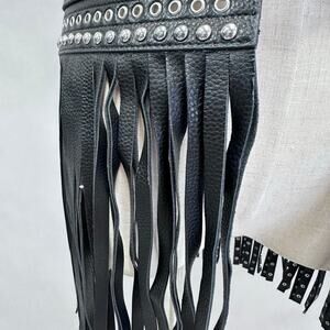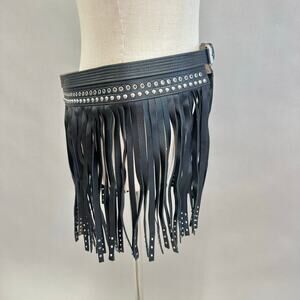 BCBGMAXAZRIA Studded Fringe Waist Statement Belt One Faux Leather Size Large NWT