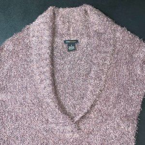 BCBGMAXAZRIA Sweater Women's Size S Fuzzy Knit Shawl Collar Plunging V-Neck 90s