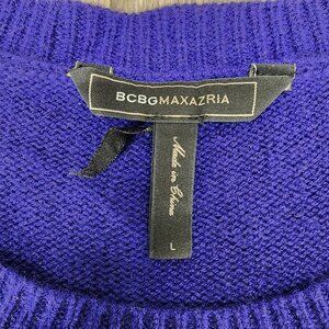 BCBGMAXAZRIA Sz Large Blue Wool Blend Asymmetrical Hem Long Sleeve Sweater Dress