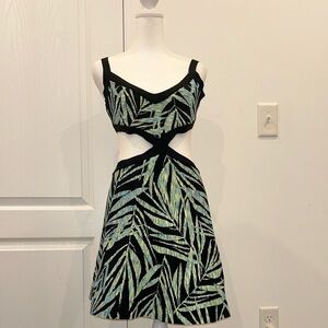 BCBGMAXAZRIA Tropical Leaf Print Cutout Dress, Size Small