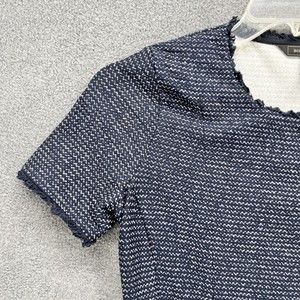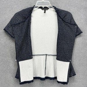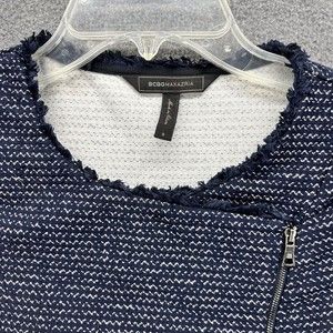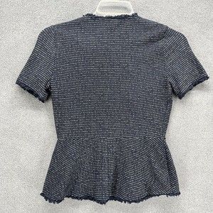 BCBGMAXAZRIA Tweed Peplum Top Womens Size S navy Blue Zip Front Short sleeves