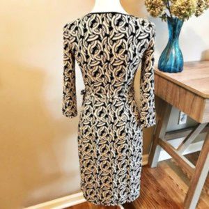 New without tags! Umbrella print wrap dress from BCBGMAXAZRIA. Features a two-tone umbrella print, timeless flattering wrap silhouette, v-neck and 3/4 sleeves. Easy transition from desk to dinner! Tag size XS. Approximate measurements laying flat: armpit to armpit 14" (stretchy), length 38". Bundle & Save!