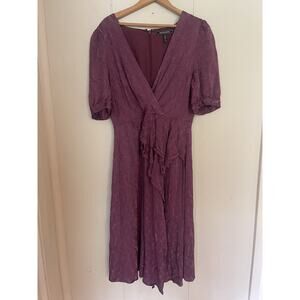 BCBGMAXAZRIA V Neck Wine Purple Paisley Victorian 40s Ladylike Dress 12