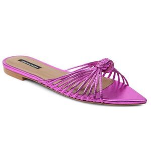 Chic metallic pink pointed toe strappy slides flats by BCBGMAXAZRIA.