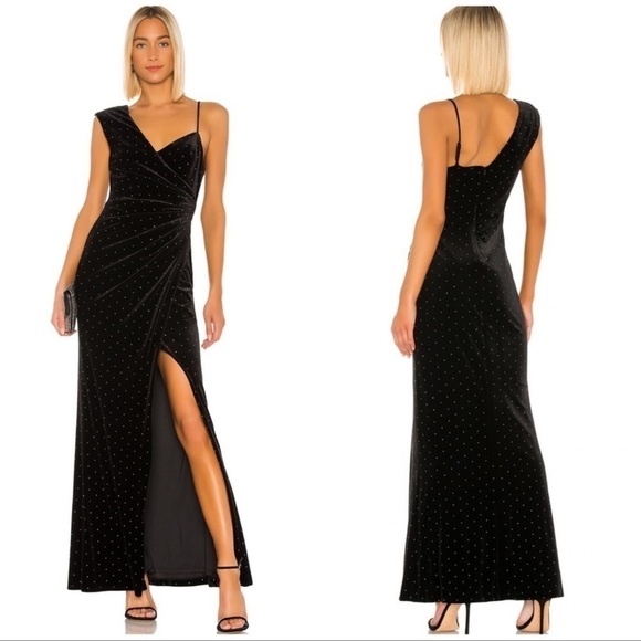 BCBGMAXAZRIA Velvet Rhinestone Detail Gown in Black Size: XL BCBGMaxAzria