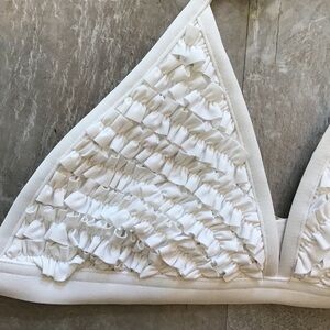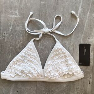 💕BCBGMAXAZRIA💕 White Ruffle Triangle Bikini Top
