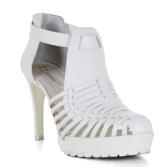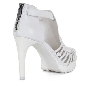 Extremely rare white leather caged high heel bootie w/ silver hardware from BCBG Max Azria Runway.
