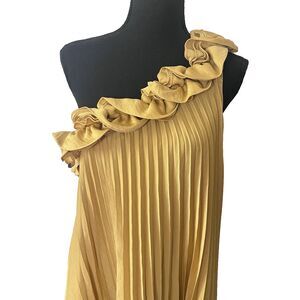 BCBGMAXAZRIA Wm's Size M CeCe One-Shoulder Sunburst-Pleated Dress