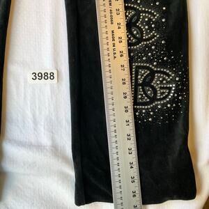 BCBGMAXAZRIA Women Velvet Pants size L Black Slightly Flared Rhinestones Trendy