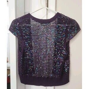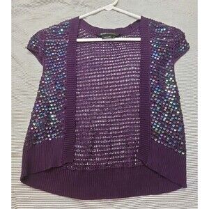 BCBGMAXAZRIA Women's 100% Silk Purple Knit Shrug With Blue Sequins Size M