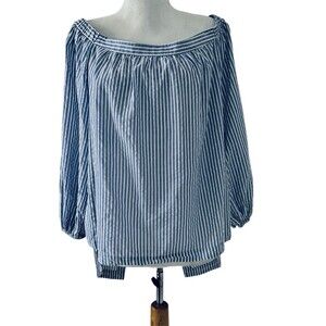 - Blue off shoulder mid sleeve.100% cotton. Size large