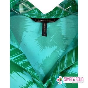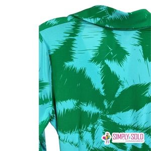 BCBGMAXAZRIA Women's A-Line Dress Long Sleeve Green Stretch Collared Wrap Pullover S