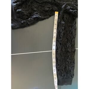 This versatile black lace bomber jacket is suitable for both casual and formal occasions. Pre-owned, from a smoke-free home