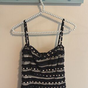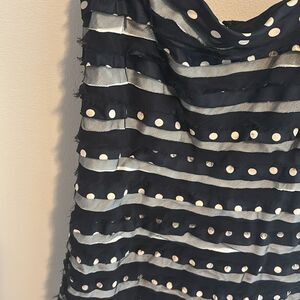 BCBGMAXAZRIA Womens Black Silk Polka Dot Layered Sleeveless Shift Dress Size 10