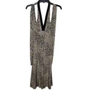 BCBGMAXAZRIA Womens Black Tan Cream Flowy Halter Dress Floral Print Wrap Waist M