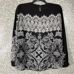 BCBGMAXAZRIA Womens Black & White Lace Print Blouse - Size Small - Romantic Goth