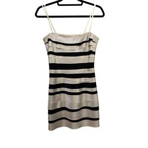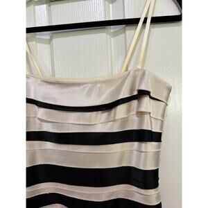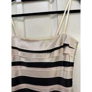 BCBGMAXAZRIA Women's Black White Strapless Tiered Satin Sheath Dress Size 4P