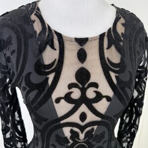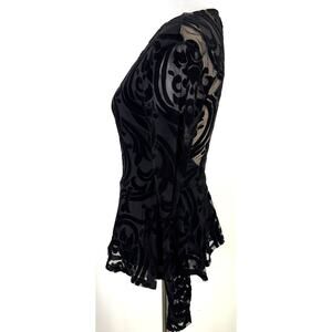 BCBGMAXAZRIA Women's Colleen Baroque Burnout Velvet Puplum Top Size XS