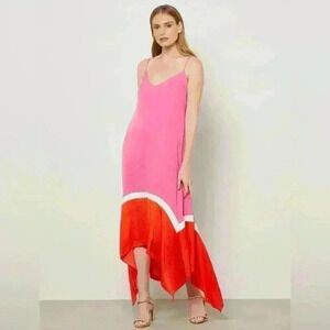 BCBGMAXAZRIA Womens Color Block Mixi Bright Bohemian Dress Spaghetti Straps NWOT