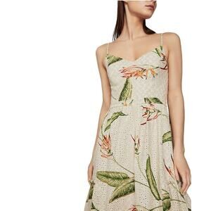 BCBGMAXAZRIA Women's Embroidered Sleeveless Midi Casual Dress Natural Floral 12
