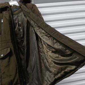 BCBGMAXAZRIA Women’s Faux Fur Hooded Parka Coat Winter Jacket Insulated Size Small Green Casual Outdoors All Weather Grunge Gorpcore Hiking Ski