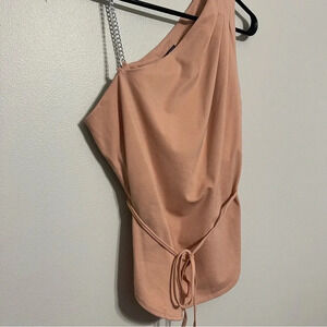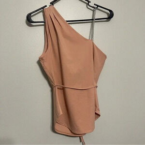 BCBGMAXAZRIA Women's Fitted Top Pleated One Metal Chain Strap Tie Waist Belt XS