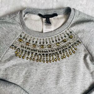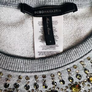 BCBGMAXAZRIA Womens Gray Beaded Long Sleeve Pullover Top Size Medium