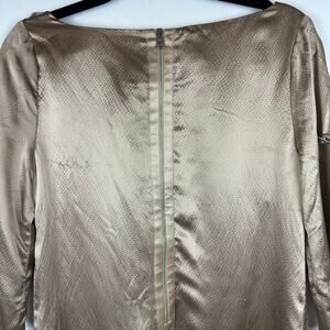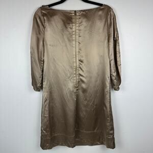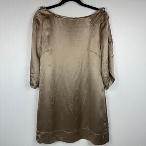 BCBGMAXAZRIA Womens Hammered Scoop Neck 100% Silk Champagne Shift Dress Small