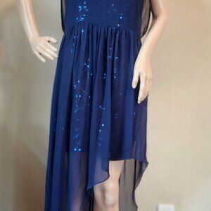BCBGMAXAZRIA Women's Katrine Sequin and Chiffon Asymetrical Evening Gown