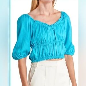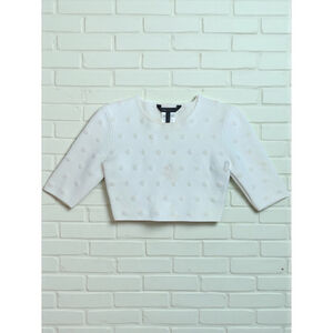 BCBGMAXAZRIA Women's Off The Shoulder Crop Sweater Top Size XL Color Blue