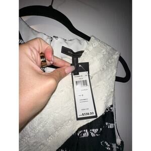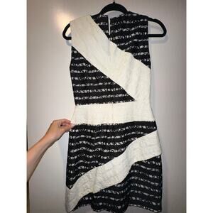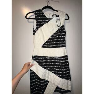 BCBGMAXAZRIA Women's Off White/Black Sleeveless Stripe Lace Sheath Dalia Dress 0