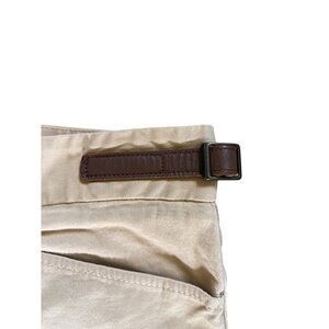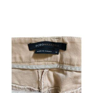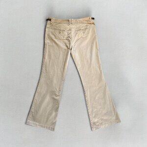 BCBGMAXAZRIA Womens Pants Flared 12 Khaki Trouser Y2K Casual Work Leather Detail