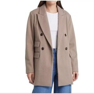 BCBGMAXAZRIA Womens Peak Lapel Double Breasted Coat Large Stone Taupe Classic