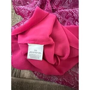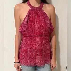 BCBGMAXAZRIA Women's Pink Azaelea Combo Ruffle Silk Halter Top Size Large