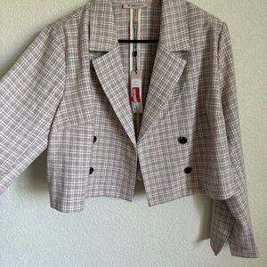 BCBGMAXAZRIA Women's Plaid Cropped Jacket - Gray size large