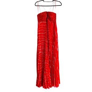 BCBGMAXAZRIA Women's Pleated Chiffon Long Dress Rosso Combo Size 6 NWT