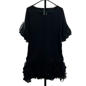 BCBGMAXAZRIA Women's S Ruffled Hem Cocktail Dress Black Retro Whimsigoth Party