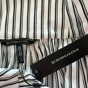 Step into sophistication with BCBGMAXAZRIA Women's Self-Tie Belt Stripe Wide Leg Pants in black and white. Chic, stylish, and perfect for any occasion. Size 2/4, crafted for effortless elegance!