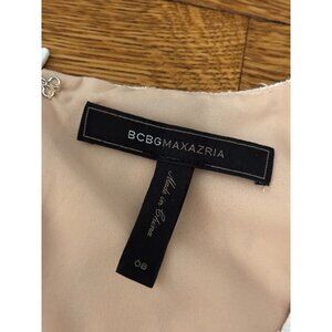 BCBGMAXAZRIA Womens Sheath Dress Sz 8 Beige White Lacey Overlay Sleeveless Shift