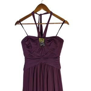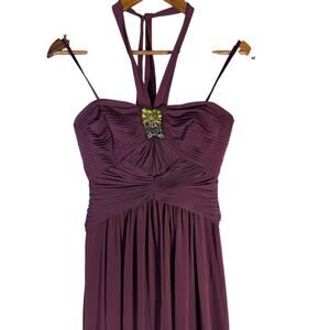BCBGMAXAZRIA Women’s Size 0 Plum Halter Evening Gown Beaded Formal Dress