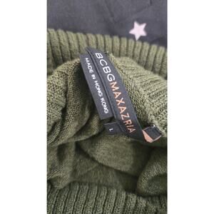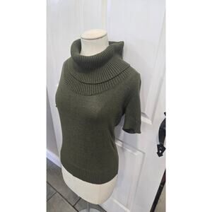 BCBGMAXAZRIA Women’s Sweater Size L Olive Green Short Sleeve Turtleneck Ribbed Knit
