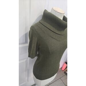 BCBGMAXAZRIA Women’s Sweater L Olive Green Short Sleeve Turtleneck p77